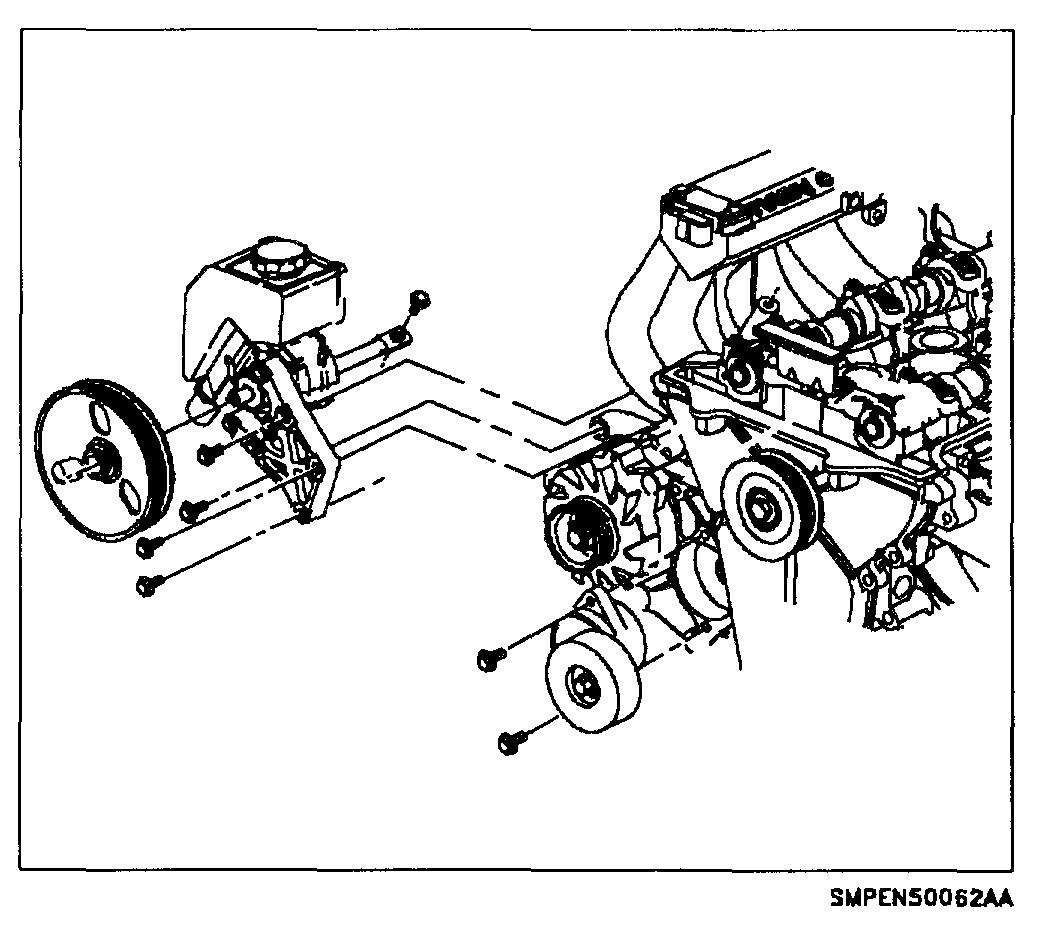 5. Install power steering pump assembly. Refer to Power Steering Pump" installation procedure in the steering section of the Chassis.