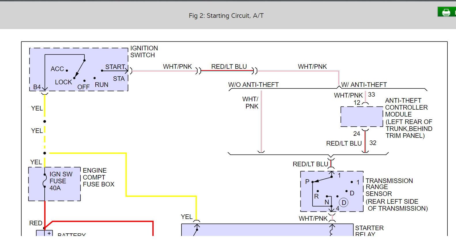 I have included a few on vehicle troubleshooting guides for you in the diagrams down below as well as the Starting Circuit Wiring Diagram. Please go through them and get back to us with what you find out.