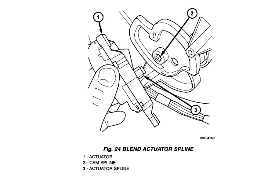 NOTE: Prior to part replacement, re-calibration the HVAC actuator. Disconnecting negative battery cable for 60 seconds. This will automatically initiate the software calibration procedure.