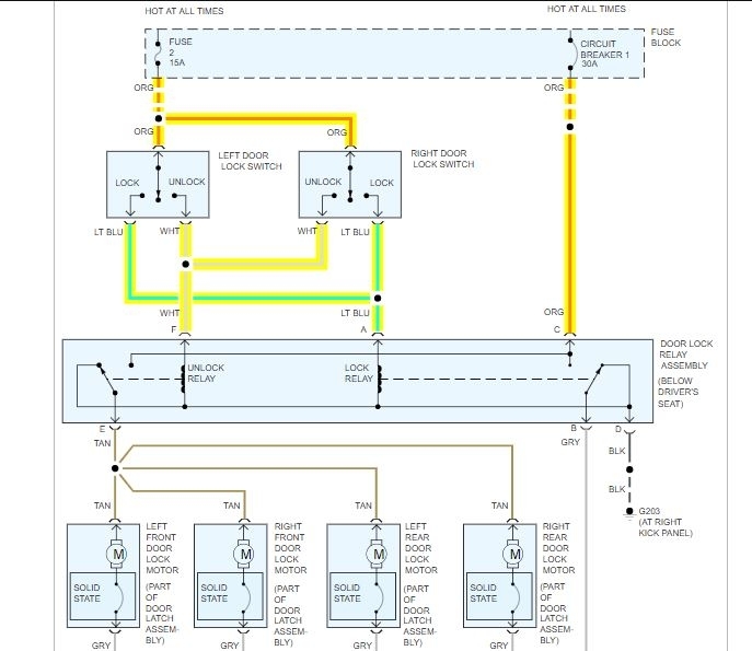 Power door locks interior lights Empire Truck quit working all at once all together. Never no other electrical problem before check uses found no problem know nothing about relays.