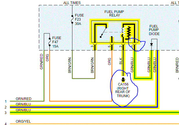 So I checked the fuses f23 it is always hot, f47 it is getting 12.5 volts. Problem, I just don't see voltage at terminal 87.