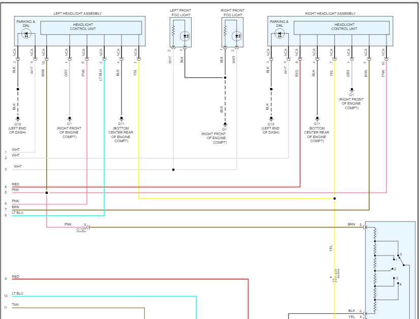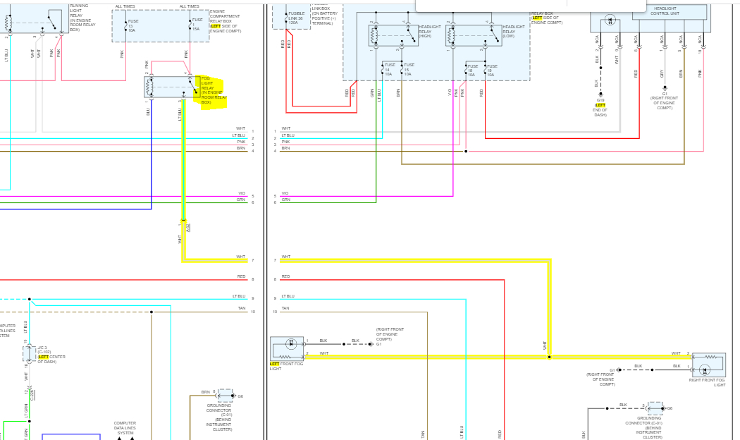 1. I am looking for left or right wire for low beam. Could you please add wiring for the headlights too?