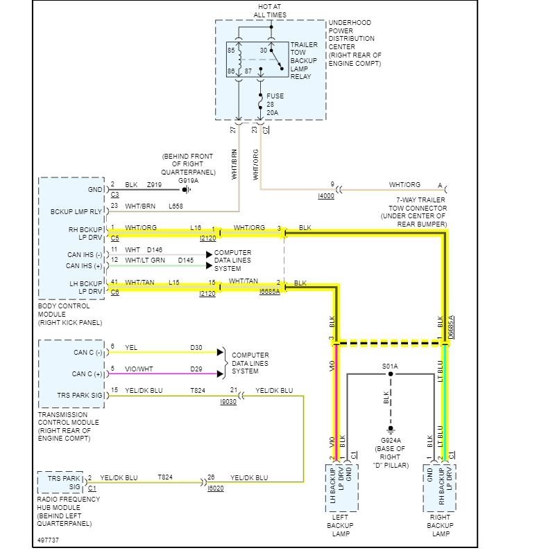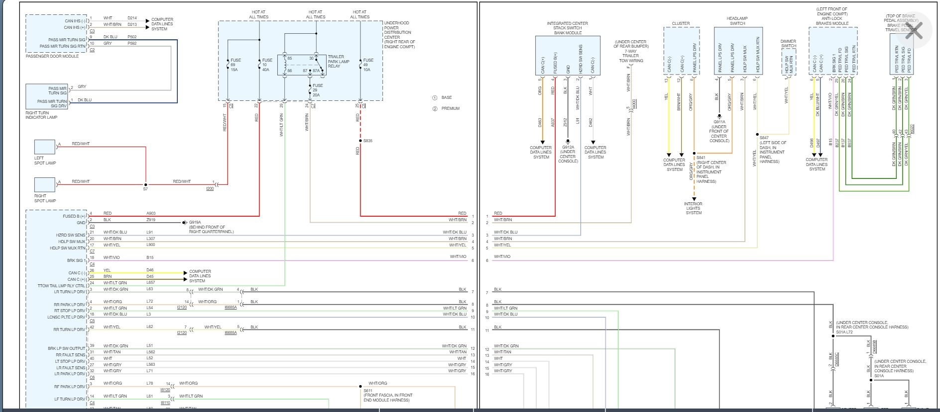 I circled the connectors, but they didn't give a location. The one is back by the taillights, but you will need to open the harness to check for that connector and see if it carries the extra wires for the 4-light system.