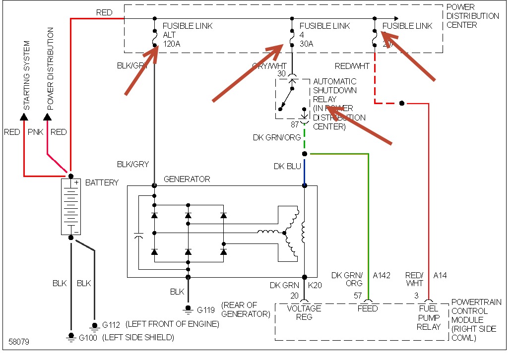 Check the fusible links in power dist center along with links 2 &3 check your automatic shutdown relay pic enclosed.
