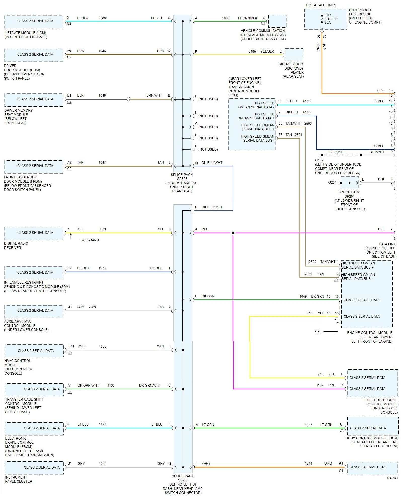 The attached image is the data lines on that truck. Everything that says class 2 data is a suspect. It could be internal to a module or simply a wire rubbing in a door.