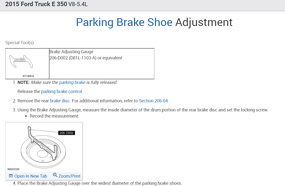 I had my rear brakes serviced at the dealership and when I received my vehicle back the emergency brake was not working at all. I used my emergency brake all the time so I know it worked and being too busy to go back to the dealership to have them fix it I was without for a while. So, another shop was open on the weekend and looked at it for me and discovered it just needed to be adjusted. I now want to adjust it more so it will hold the truck on an incline and like I said I used it all the time before and I can tell by how hard it is to push the pedal down that it needs to be adjusted more. So, I just want to know how to adjust it, I don't want suggestions like take it back to whoever because I have my reasons for not taking it to anyone I want to adjust it myself and by the way the mechanic who adjusted it to where it is now it took a matter of 5 minutes, so I know I should be capable. Thanks so much for your expertise and most importantly your time in responding to my question. This 2015 e350 is a dually box truck Thank you.