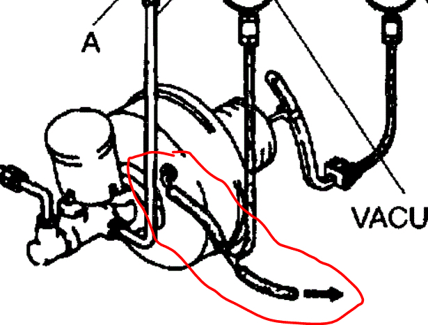 I attached a pic of the booster below and circled the vacuum hose. Check it for damage and make sure it is properly attached.