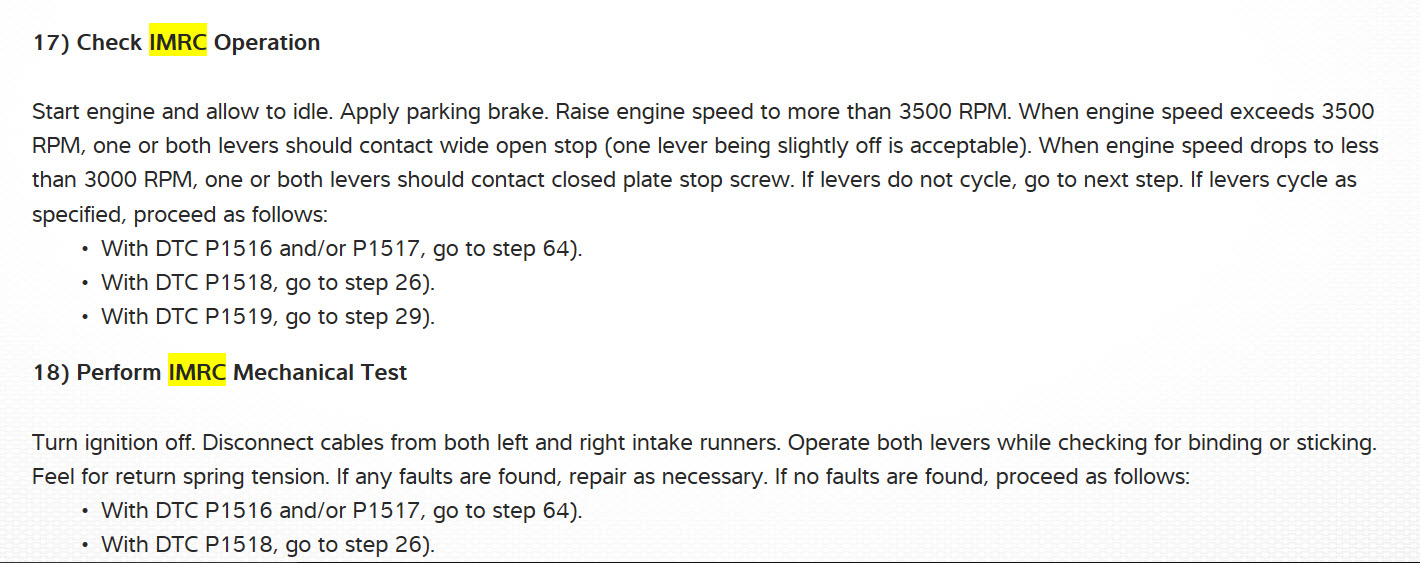 I have had a few 1996-1998 Cobra's with the IMRC 's, at 3250 rpm you can normally feel a slight hesitation as the IMRC opens. How can I tell they are opening, opening all the way, if all are opening, or a cleaning is needed?