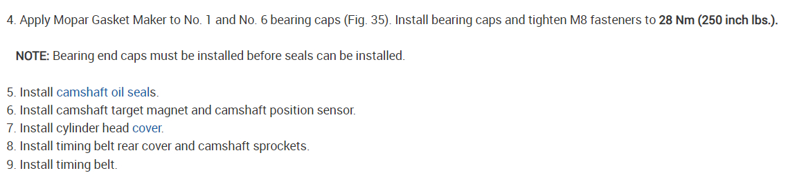 Sure, here is the camshaft removal and installation instructions with the torque specs and how the camshaft bearing caps are assembled. Check out the images (below). Let us know if you need anything else.