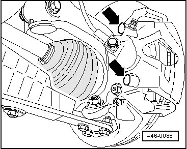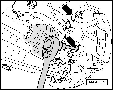 - Loosen both guide pins - arrows - and remove from brake caliper.