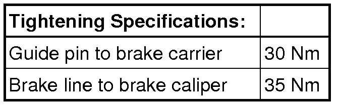 Work procedure applies only for replacing or when performing subsequent service work on brake caliper.