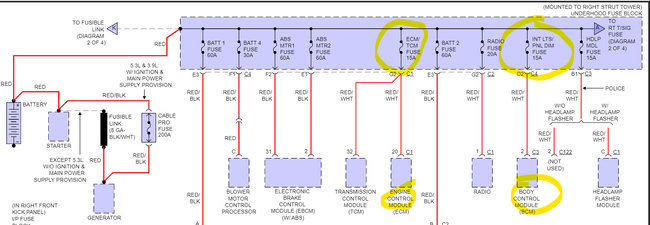 Pins 43 and 44 I'm not super worried about your reading battery voltage there, it just be might a little low because of the key being on during testing.
