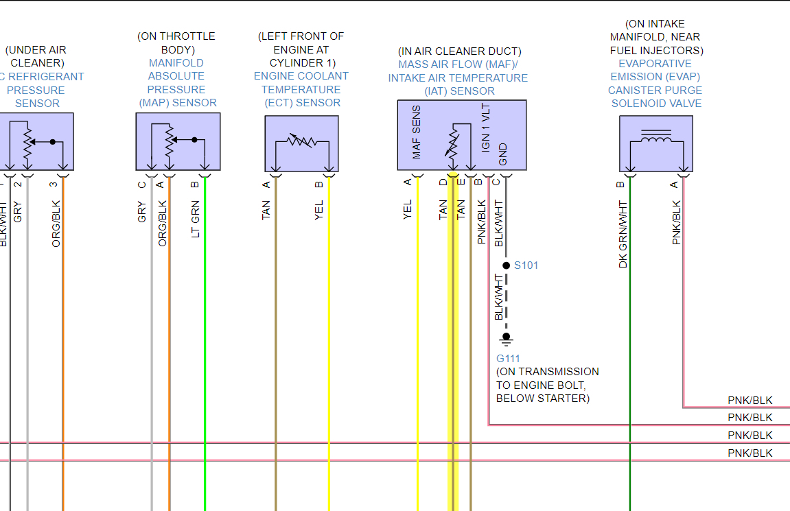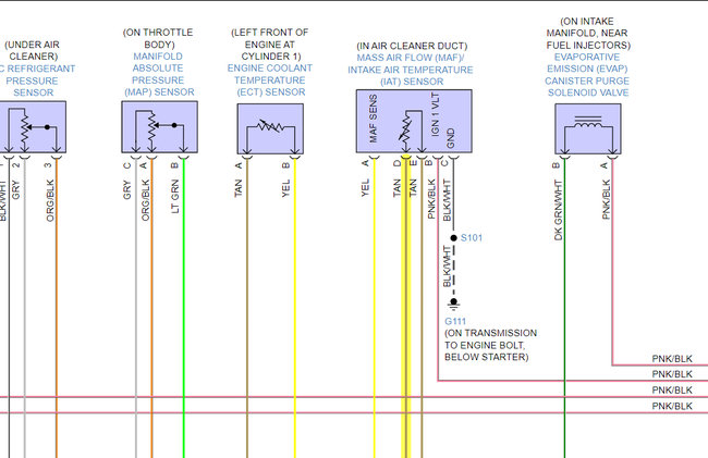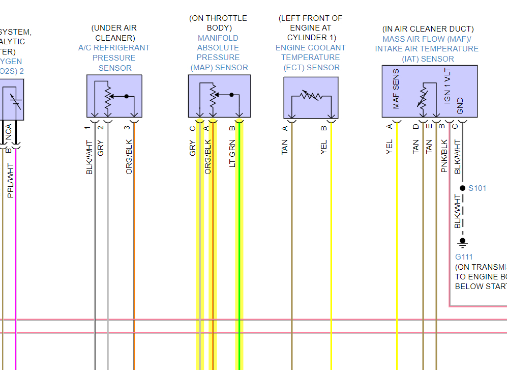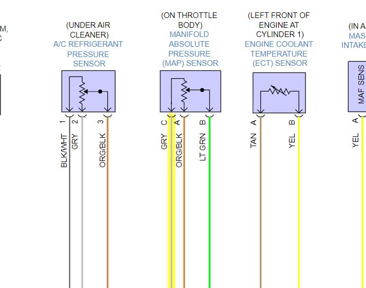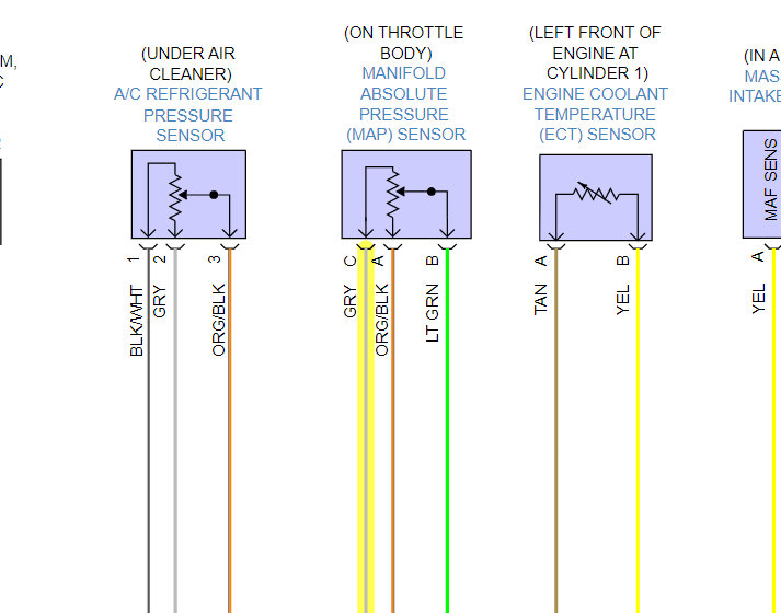 Okay, well we've found some problems then, 5-volt Ref 1 (Pin 37 Grey wire is that Map sensor Reference voltage) so it's not making it from the ECM to the map sensor,