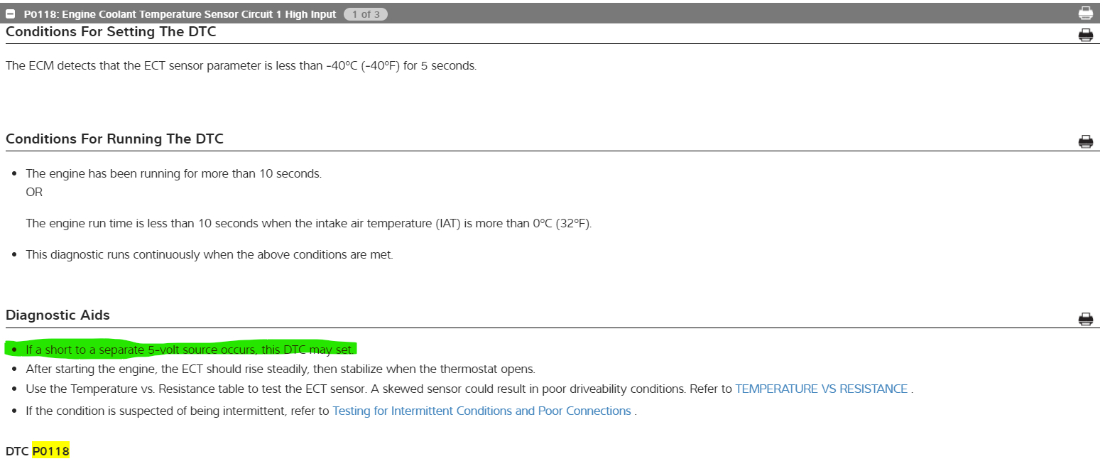 So, then I looked at the Chevrolet OEM diagrams and found that the Coolant Sensor signal input wire to the ECM and the MAP sensors 5v Ref feed wire pins at the ECM are right next to each other. I will put the diagrams below. I think the Map sensor 5vRef is shorting to the Coolant sensors input Signal wire at the ECM connector, there might be a bent pin there or some corrosion, but it makes sense that the Map sensors signal would be low, and the Coolant sensors signal would be High input just like the first 2 codes you're getting.