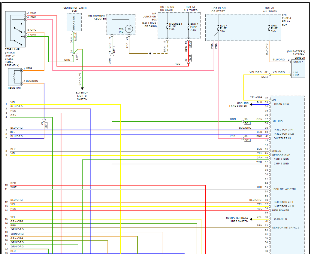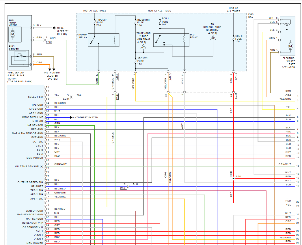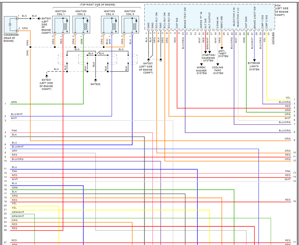 Could I get the wire diagram of the engine management system in order to reconnect the damaged wires