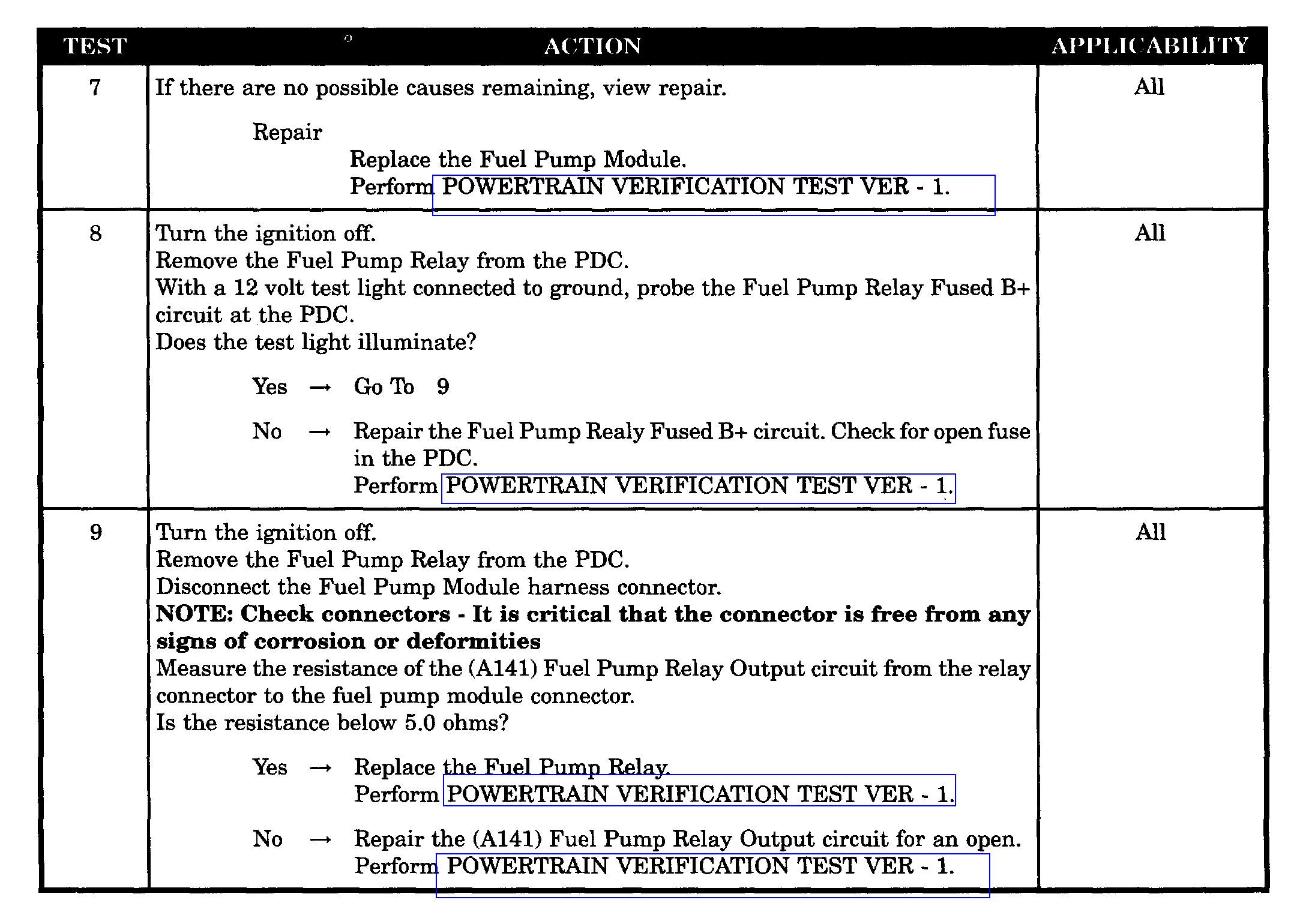 - (A141) Fuel Pump Relay Output Circuit Open