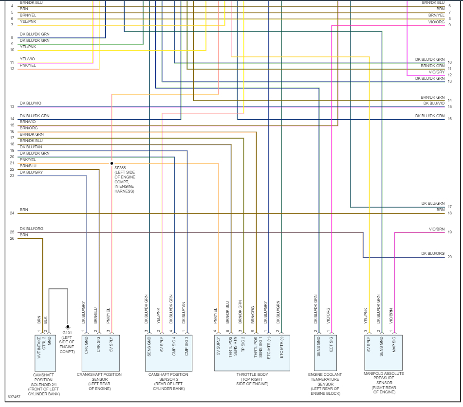 Car was in front end collision, but not extreme although air bags deployed. The engine starts easily and idles smoothly but no response to accelerator at all. Replaced accelerator pedal with new one and same thing happens. Tested wiring and found no response on 6th pin on the accelerator pedal wiring harness connector. All other pins had correct voltage.