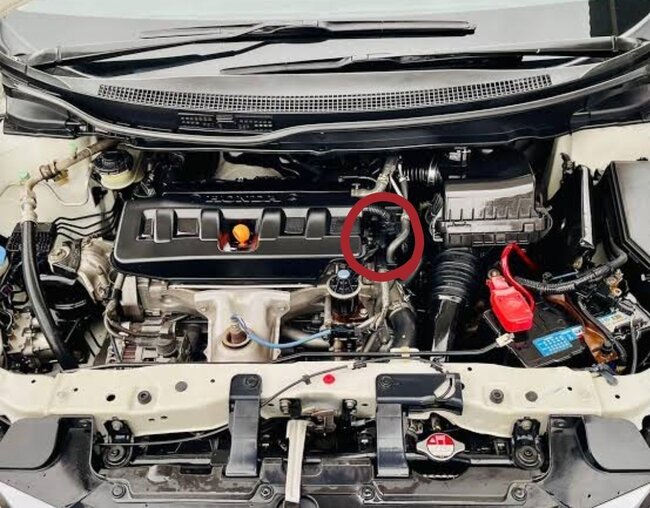 I have cleaned the area and went to the local workshop. They diagnosed and said that the oil was leaking from here I don't know what that part is called I am providing a picture with marking). I know it is not from the tappet cover it's from the part next to it looks like a box cover black and behind is something fishy. I am providing a picture. Help me what that part is and how to fix that!