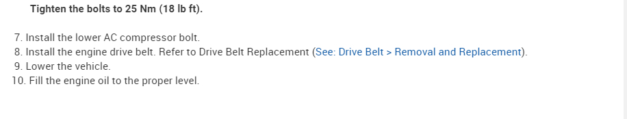 It also says the lower AC compressor bolt but I think this is just for clearance so I would play that by hear. Other than that, it looks like that is it according to the service manual.