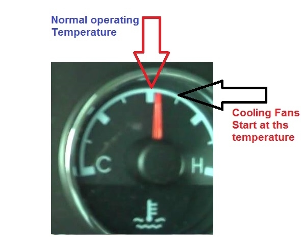 I was expecting less temperatures for these settings and now after fixing water pump, thermostat, and temperature sensor I would like to know what actual temperatures are corresponding to one hash/division after gauge center, and some times little more, at which my cooling fans are starting now.