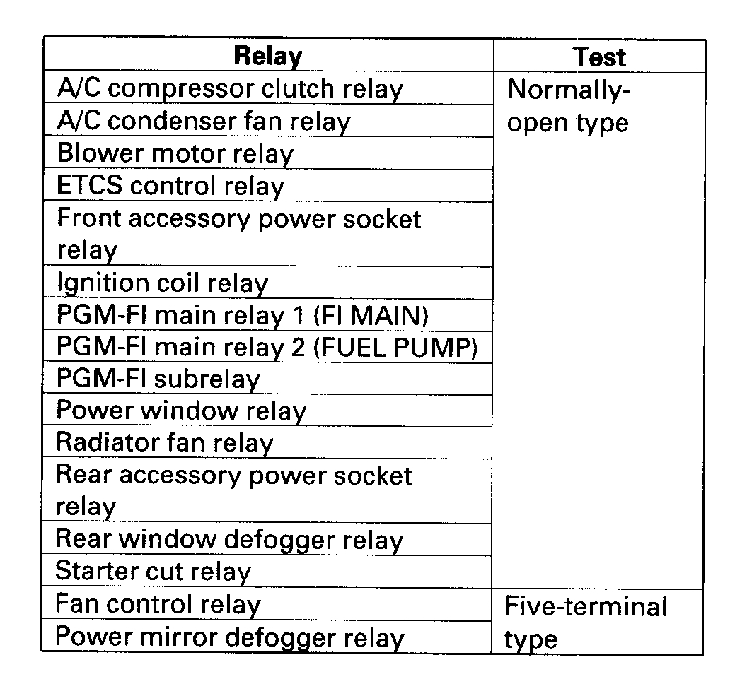 Use this chart to identify the type of relay, then do the test listed for it.