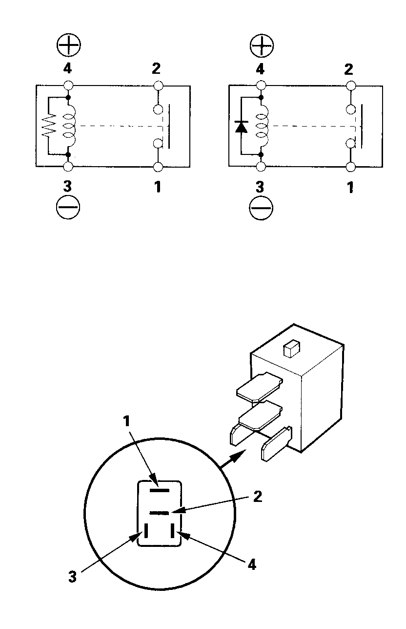 - There should be continuity between the No.1 and No.2 terminals when battery positive terminal is connected to the No.4 terminal, and battery negative terminal is connected to the No.3 terminal.