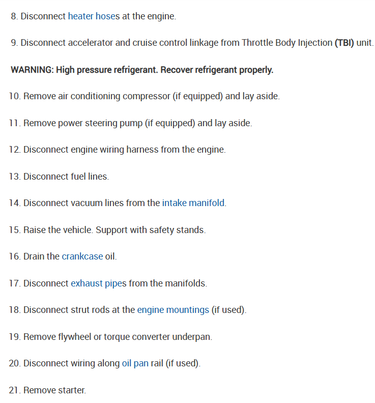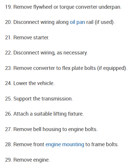 Sure we can help you, drain the coolant and engine oil, you will need an engine hoist which you can rent. If it has A/C you will need to watch this video to help you: