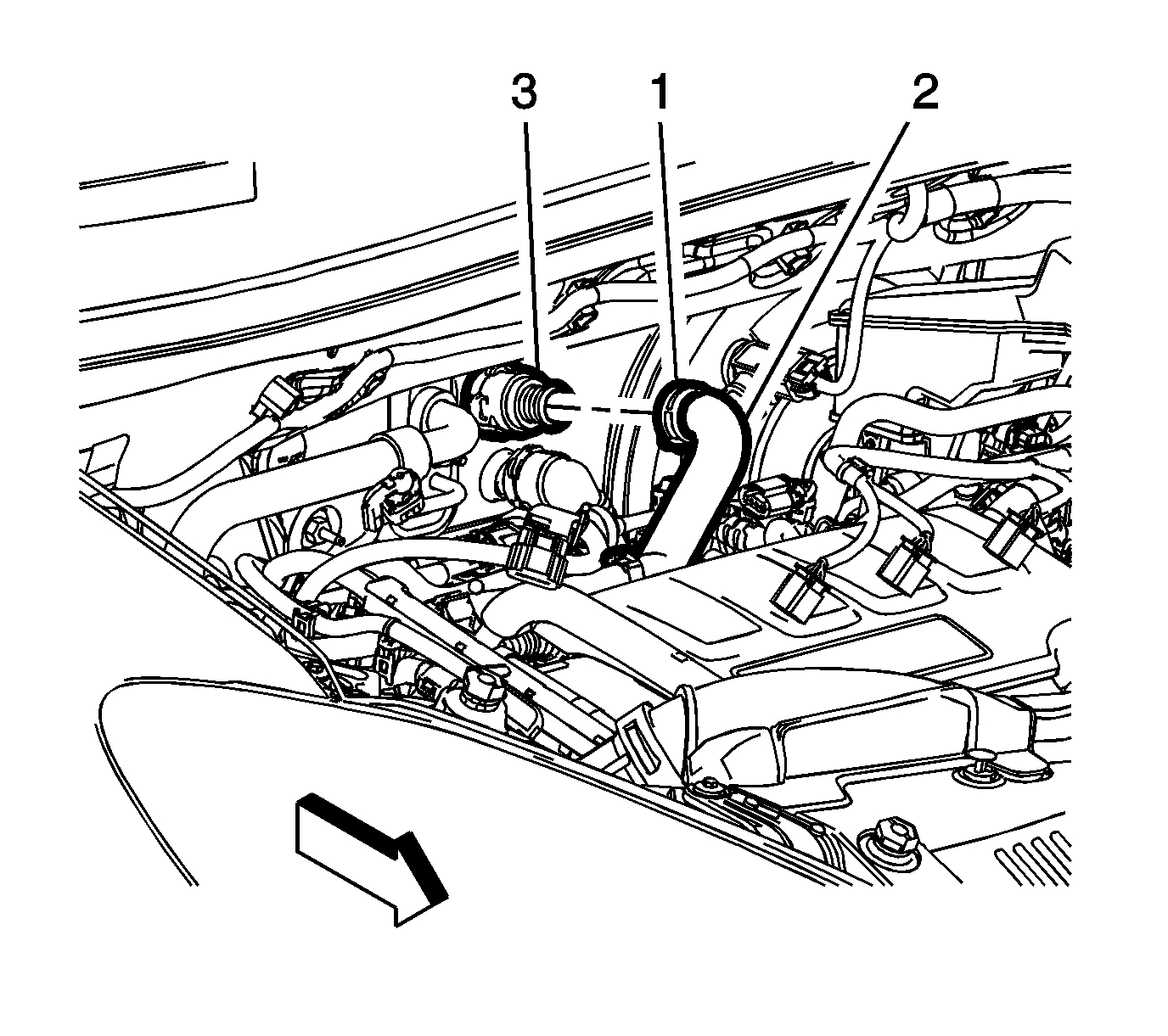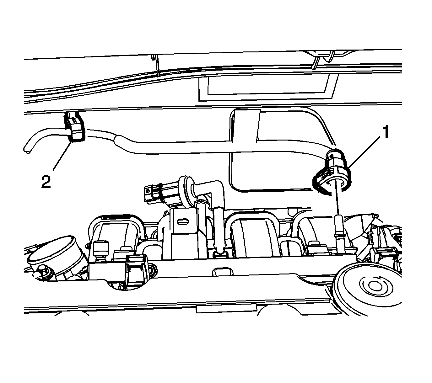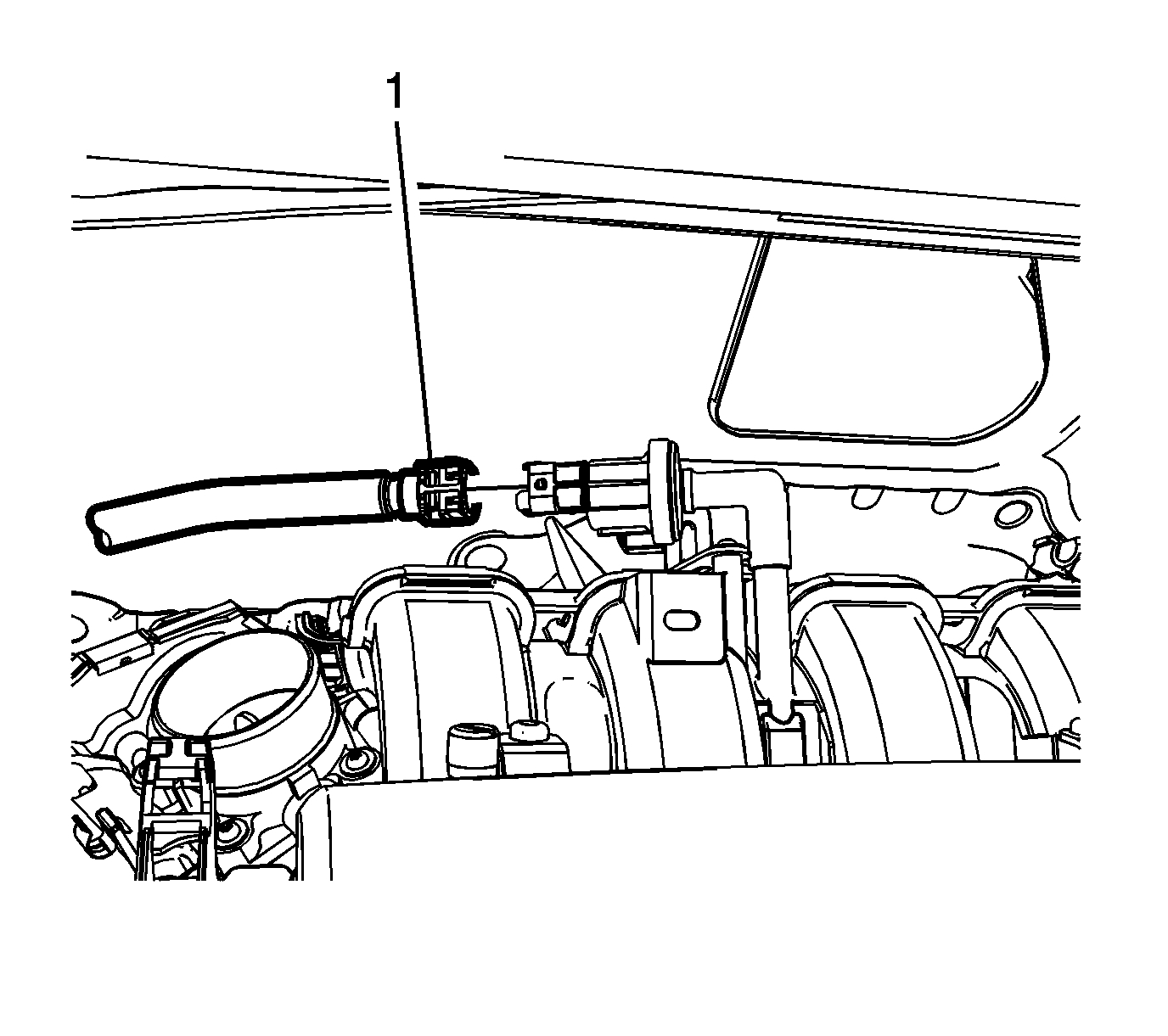 34. Disconnect the evaporative emission pipe (1). Refer to Plastic Collar Quick Connect Fitting Service See: Coolant Line/Hose > Procedures > Plastic Collar Quick Connect Fitting Service.