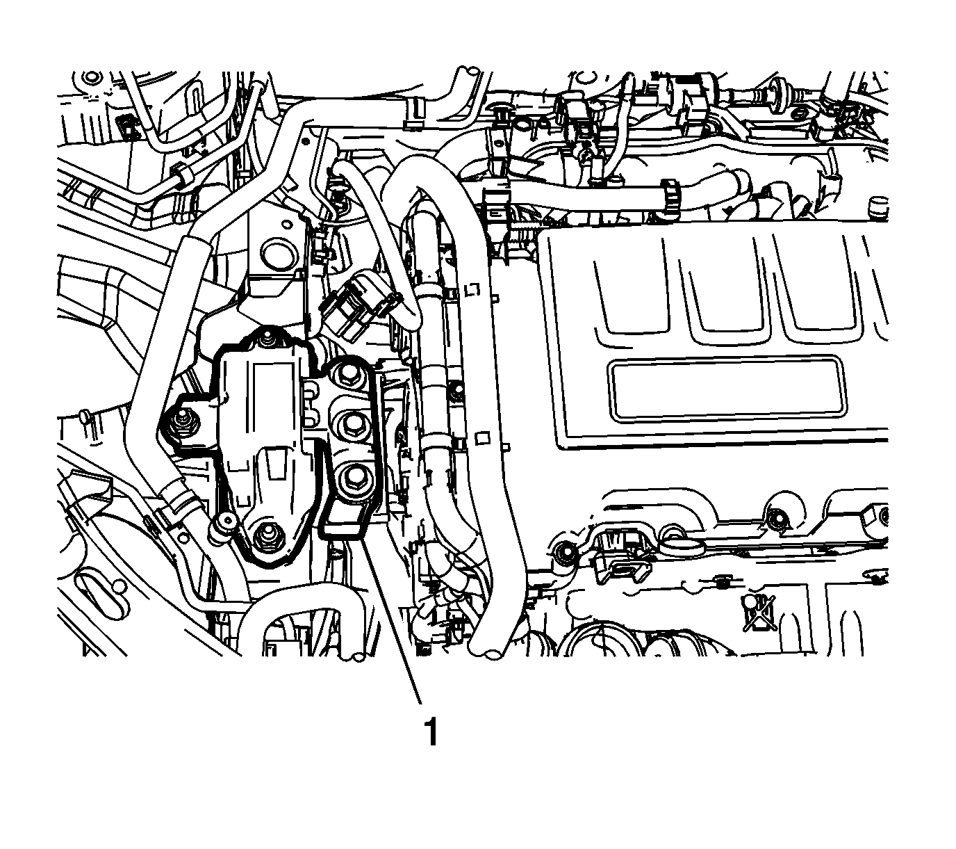 8. Install the right side engine mount (1). Refer to Engine Mount Replacement - Right Side See: Engine Mount > Removal and Replacement > Engine Mount Replacement - Right Side.
