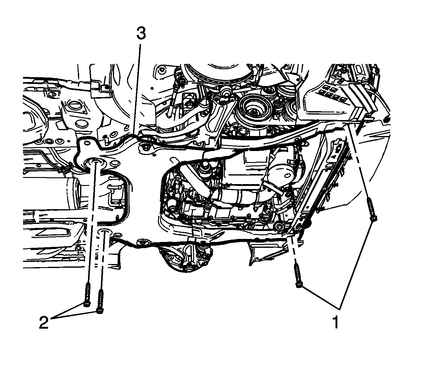 11. Install the frame (3) rear bolts (2) and tighten to 135 Nm (100 lb ft).