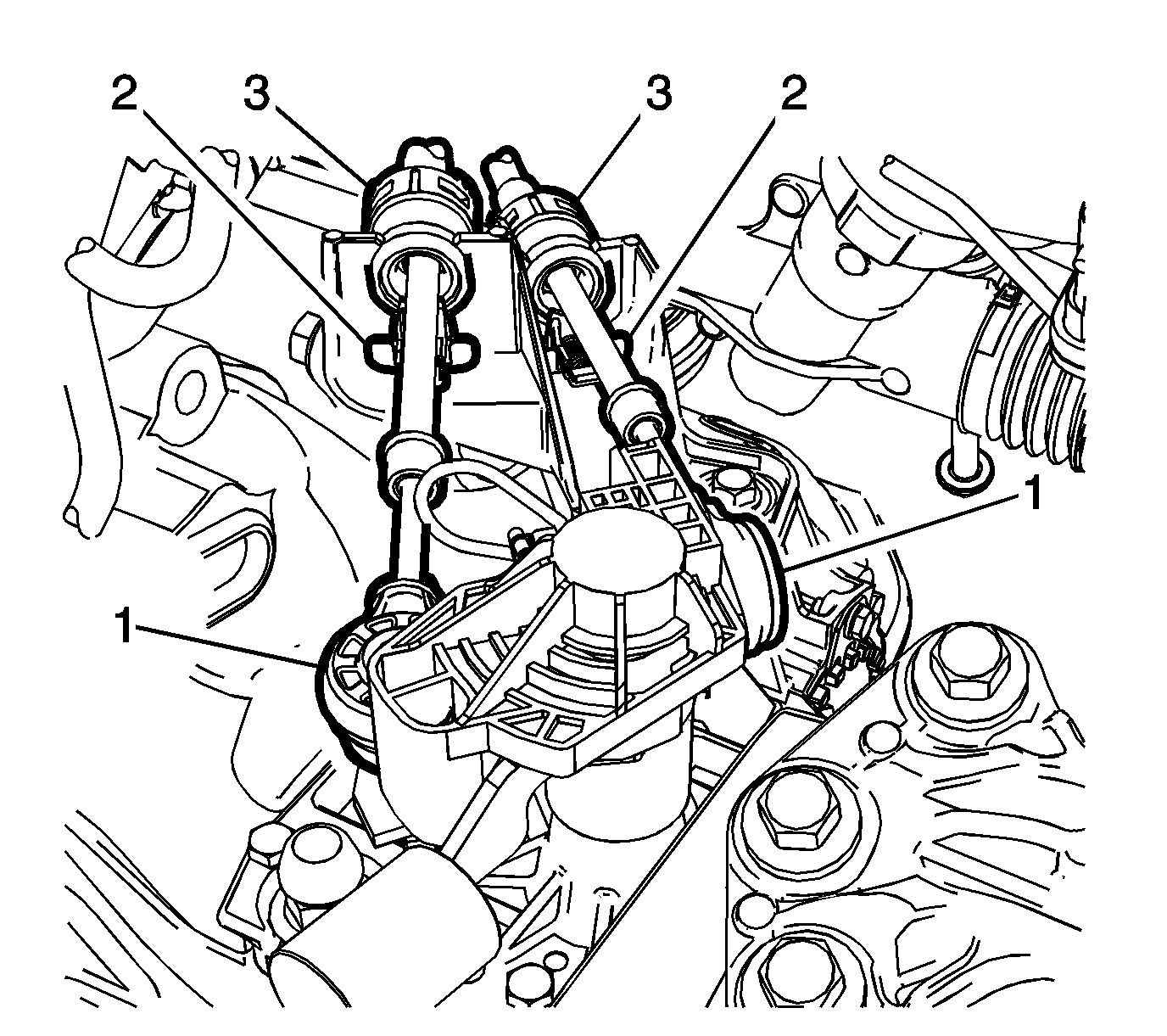 19. Install the lower transmission bolts (3) and the lower transmission nut (1) and tighten to 40 Nm (30 lb ft).