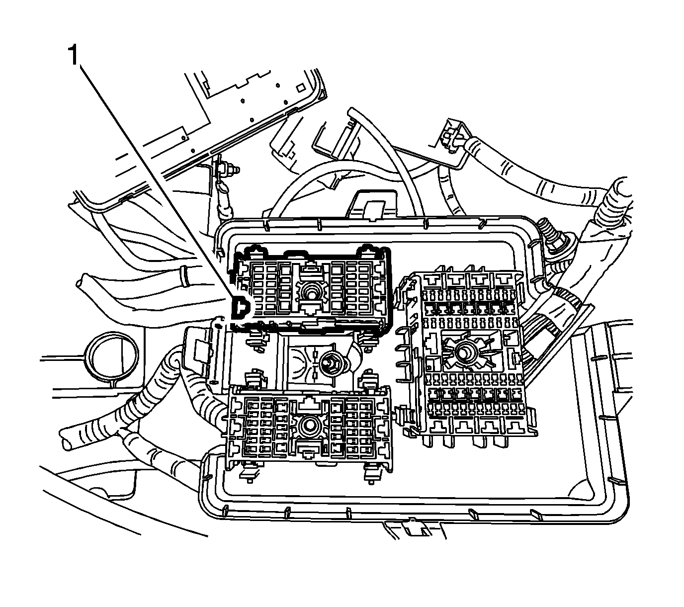40. Install the junction block nut (1) and tighten to 5 Nm (44 lb in).