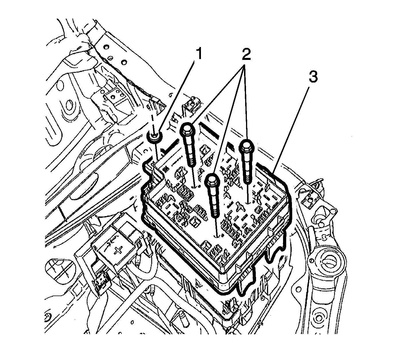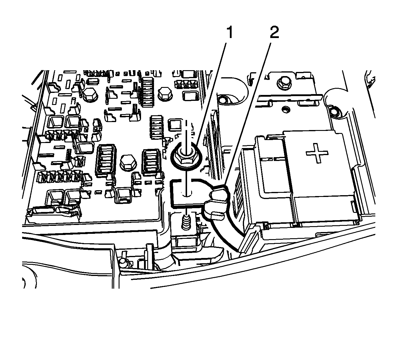 39. Install the junction block bolts (2) and tighten to 5 Nm (44 lb in).