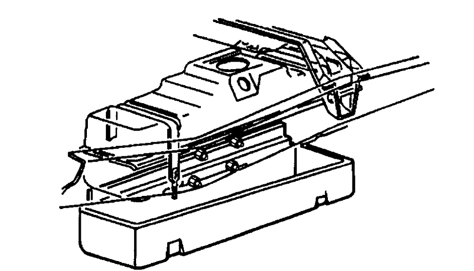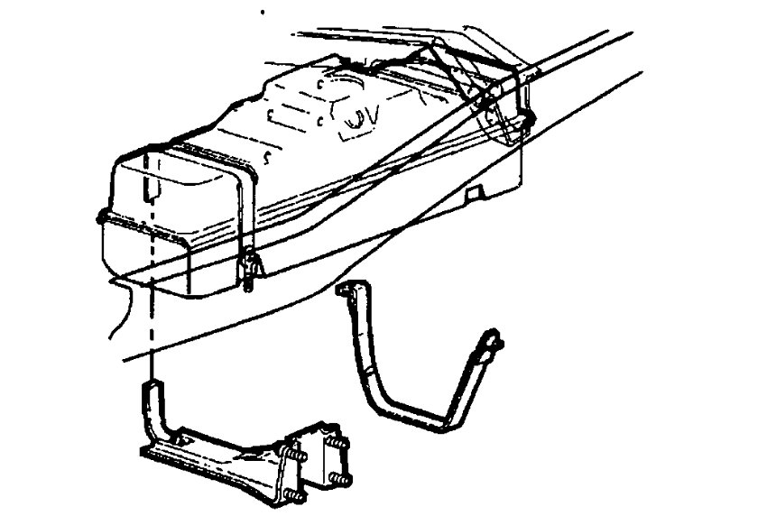 4. Support the fuel tank and remove the tank straps and insulator strips, it equipped.
