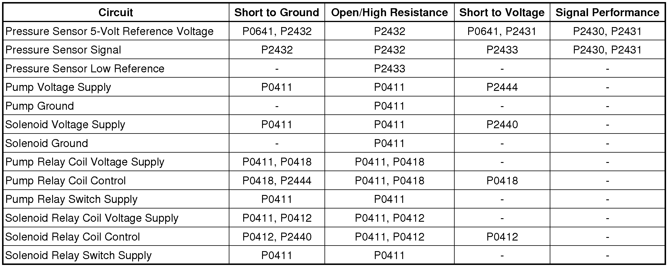 Vehicle ALL Diagnostic Trouble Codes ( DTC ) Testing and Inspection P Code Charts P0411