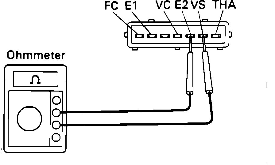 2. Using an Ohmmeter, measure the resistance between each terminal. (Refer to chart)