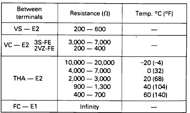 3. If the readings are not as specified, replace the Air Flow Meter.