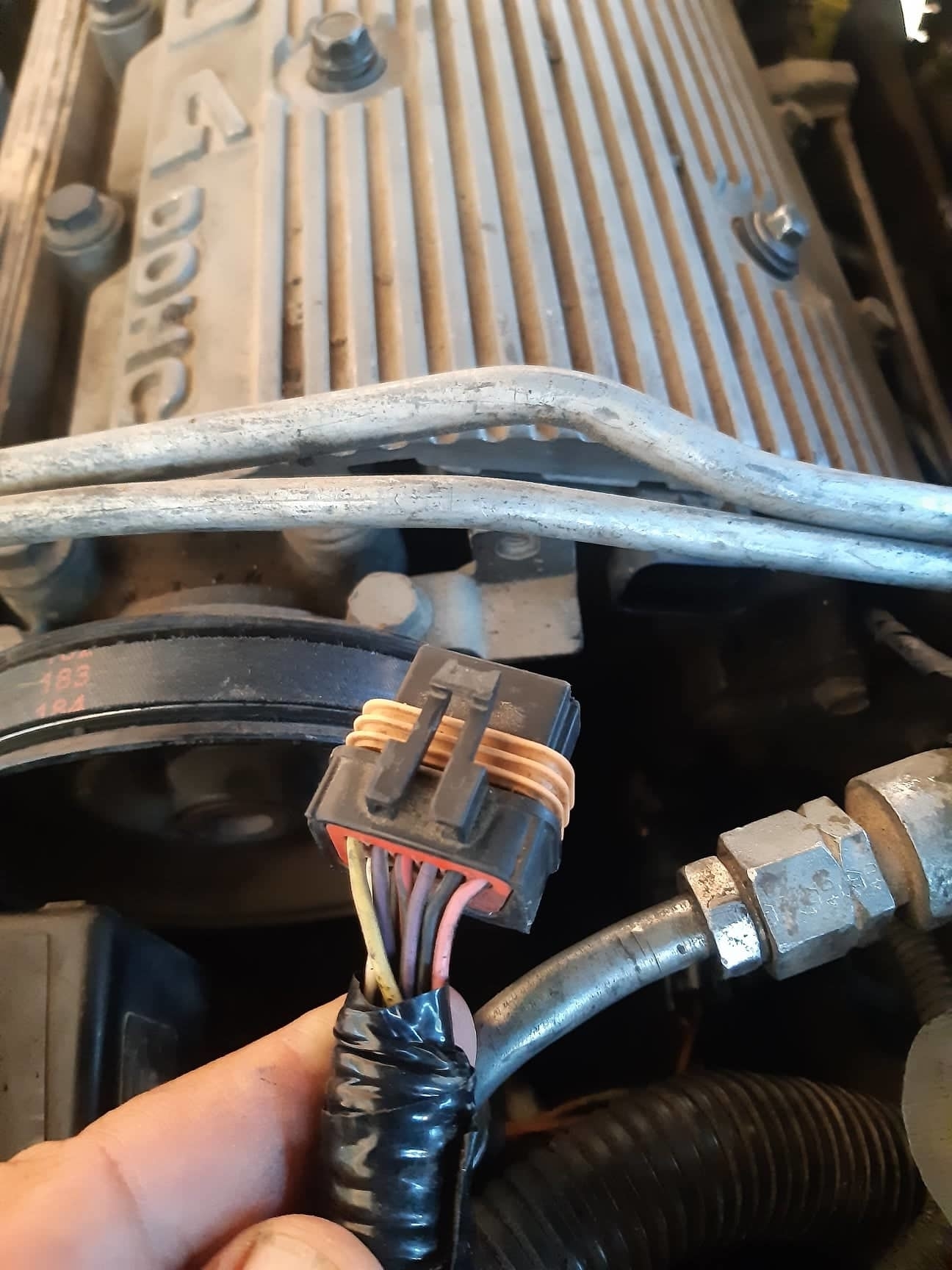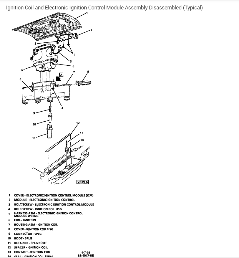 And here is the other image for the connector of the Electronic Ignition Control Module. If my replaced connector and its wires have the right color coding as the original one, then the yellow loose wire goes to the B terminal of the Crankshaft Position Sensor. It is the yellow one here, the first from left of the upper row of contacts.