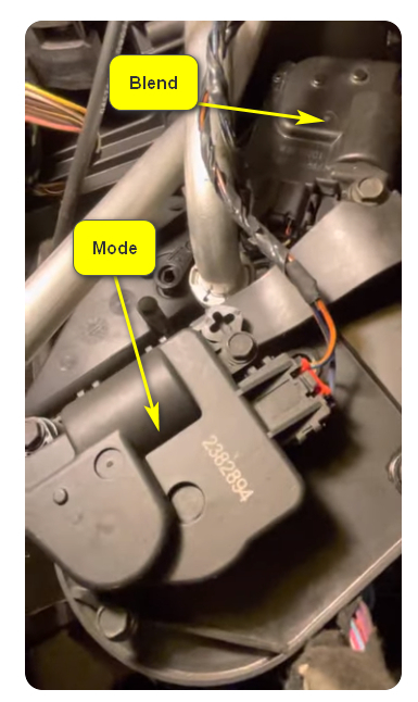 After the car runs for 15 to 20 minutes there is a single click that can be heard behind dash and immediately the temperature and mode climate controls become unresponsive. (Also, the two actuators on driver side. I know this because I have looked under the dash when the system is down, and neither actuator will be moving anything) However the fan speed will respond and the A/C will kick on if you push the A/C button. The car is a single zone system, not dual. I have already put a new climate control module/panel into the dash and replaced the mode actuator. I have not yet replaced what I think is the blend door actuator which is way up under the dash and very hard to get to. Strangely enough, if I turn the car off and then restart it all the controls will immediately begin working again, usually for a few minutes until I hear another single click behind dash and then the above mentioned controls and both actuators quit responding again.
