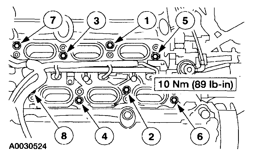 4. Install the lower intake manifold assembly and tighten the bolts in the sequence shown.