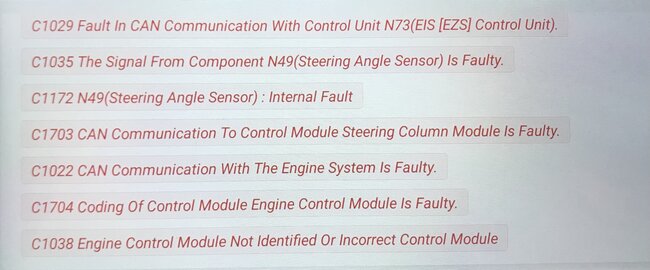 Looking at those codes you have a failure in the CAN bus. You would need to start with an oscilloscope connected to the CAN bus to see what the signal looks like. At the moment it is either missing or very corrupt. Then isolate each component on the CAN bus one at a time until the signal returns or is correct. Then you can repair or replace that part. I would start with the steering column module as there are numerous codes for it, however MB has the module on both the high and low CAN networks, so it makes it harder to test. That is, however, where I would look first. It might be possible to unplug the connector on the steering module and then erase the codes and see which ones return. The problem with that is MB likes to report the loss of signals as well as signal failures so you can end up with other codes as well. That is where using a scope to test works better as it can test with things connected and isolate the data problem.