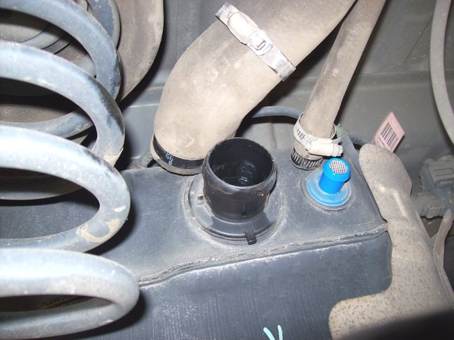 You cannot see it but the fill hose fitting (The big hole). Also, has a grid or screen in it too. The squares in it were larger than the blue fitting. My hypothesis is this is an anti-somebody sucking your fuel out prevention measure.