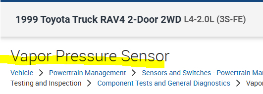 Do me a favor. Locate the sensor (I attached pics below). It's near the canister. Perform the tests I included below and let me know the results. This could be something as simple as a poor connection.