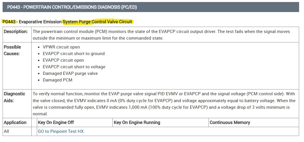 I will post the flow chart for diagnosing the first code (P0443) because its a circuit code and is most likely also the cause of the 2nd code.