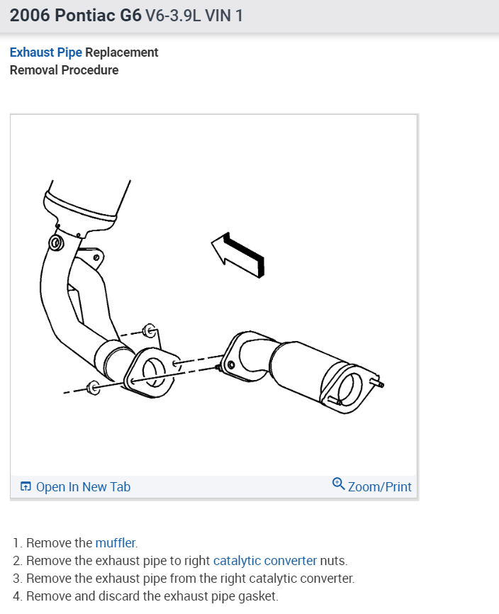 The exhaust system carries exhaust gases, treated by the catalytic converter, through a resonator, if applicable and into the exhaust muffler where exhaust noise is lessened.
