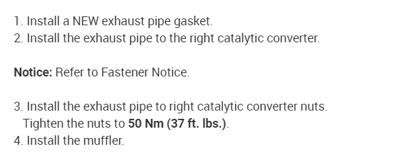 I think you can here is the information the manual gives you, I have also found diagrams on how the exhaust system looks (below) and how to install it with bolt tightening specs.