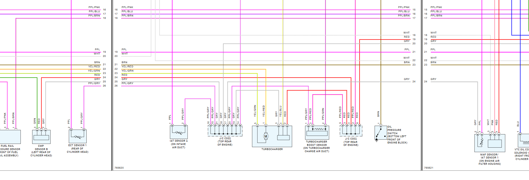 I can't find where the red, white and green wires coming out of the exhaust cam sensor go so I can continuity test them. I'm assuming it's power ground and signal I just don't know where the pinout is on the ECU.