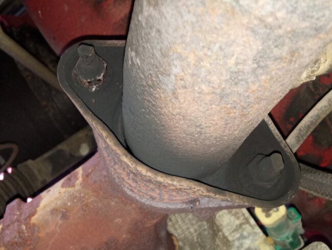 Thanks for the images they help. There is no donut like the older cars had, there is a bell made into the exhaust manifold that connects to the flange of the exhaust pipe. It looks like the exhaust pipe has broken and will need to be replaced by a muffler shop. Please check the images below to see what I am talking about; the nut size is 15mm deep well socket.