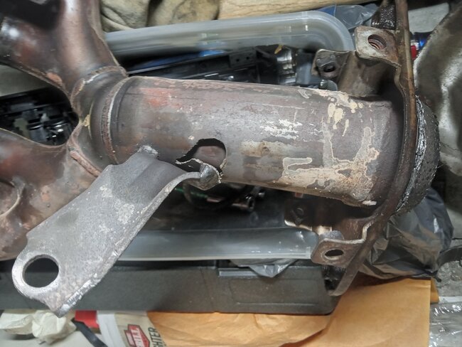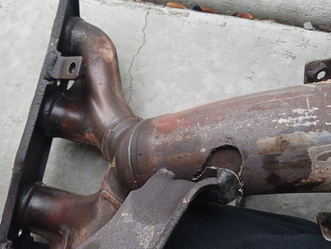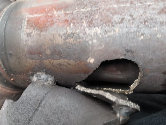 It could be but if it took that much damage the internal structure of the converter and it would likely fail testing. Plus, if you are in a smog state, they might fail you upon seeing the welding.