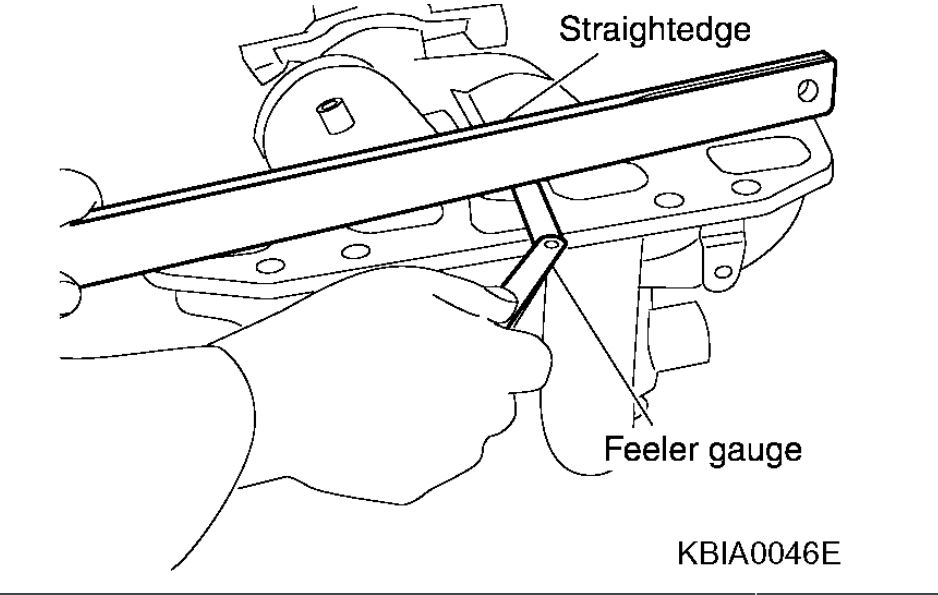Use a reliable straightedge arc feeler gauge to check the flatness of exhaust manifold fitting surface.